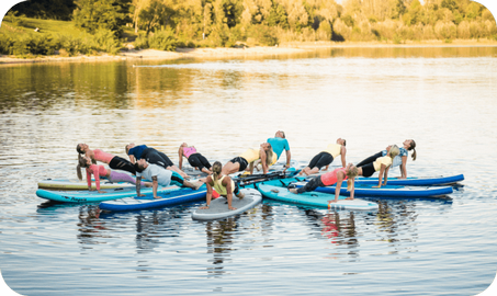 Der Trendsport SUP steht für Stand Up Paddling und fördert Gleichgewichtssinn, Motorik und Tiefenmuskulatur.